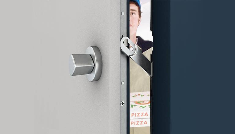 Eine zusätzliche Sicherheitsoption bietet Ihnen der Türwächter. Nicht nur, dass er ungebetene Gäste abhält ins Haus zu kommen. Dank der Anbringung auf „Erwachsenenhöhe“ verhindert der Türwächter z. B. auch, dass kleine Kinder das Haus unbeobachtet verlassen können! Seine verdeckte Beschlagtechnik entriegelt wie gewohnt beim Aufschließen von außen über den Schlüssel und innen beim Freigeben durch den Türwächterknauf.