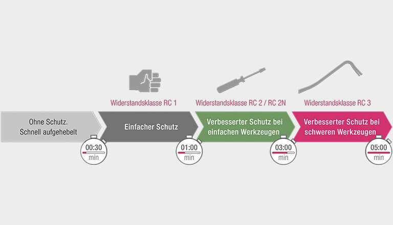 Wussten Sie schon? Fast die Hälfte aller geplanten Wohnungseinbrüche wird nach maximal 5 Minuten abgebrochen, wenn der Langfinger nicht zum Ziel kommt.